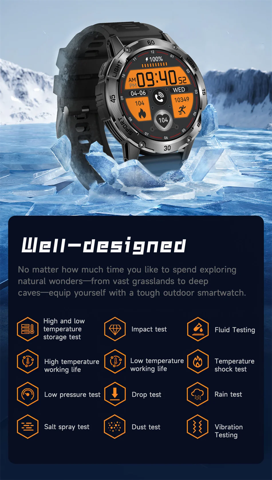 ChiBear YK10 Outdoor Smart Watch – LED Flashlight, 100+ Sports Modes, Compass & Bluetooth Calls